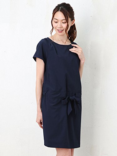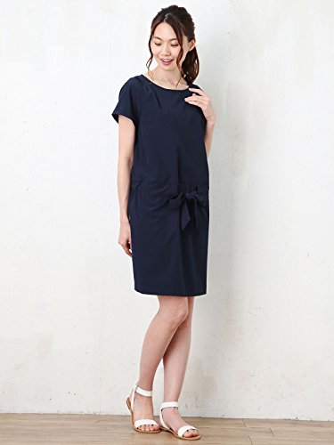 Angeliebe エンジェリーベ 産後用 ワンピース 授乳 ウェア フロント リボン ストレッチ ワンピ 授乳服 ママ 半袖 M ネイビー