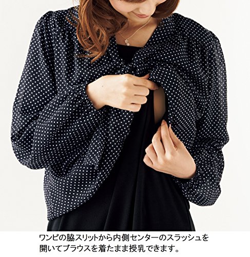 Angeliebe エンジェリーベ 産後用 授乳 ブラウス ・ ワンピース セット 授乳服 ママ 裏地付 L ブラック