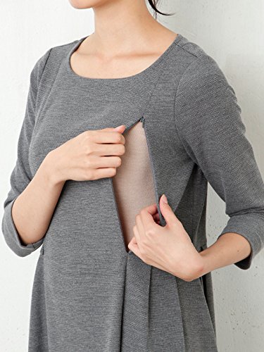 Angeliebe エンジェリーベ マタニティ ワンピース 授乳口付き ジャージ 素材 Aライン ワンピ 妊婦服 産前 産後 お宮参り M ~ L グレー 20931 20931102