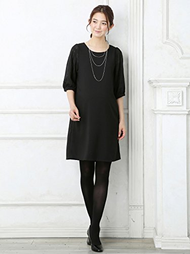 Angeliebe エンジェリーベ 授乳 口 付 シアー チェック スリーブ ワンピース M ~ L ブラック