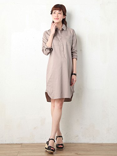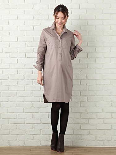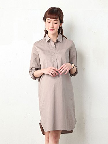 Angeliebe エンジェリーベ マタニティ ワンピース 授乳 しやすい スキッパー シャツ チュニック ワンピ 妊婦服 産前 産後 長袖 フリー ベージュ 20951 20951200