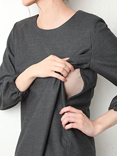 Angeliebe エンジェリーベ マタニティ 授乳口 付 サック ワンピース 妊婦服 産前 産後 通勤 S ~ M カーキ