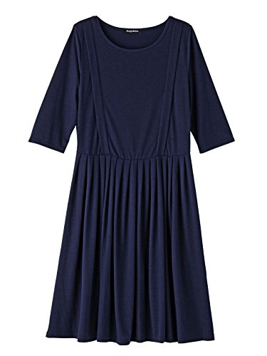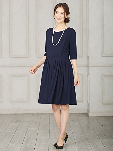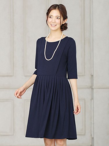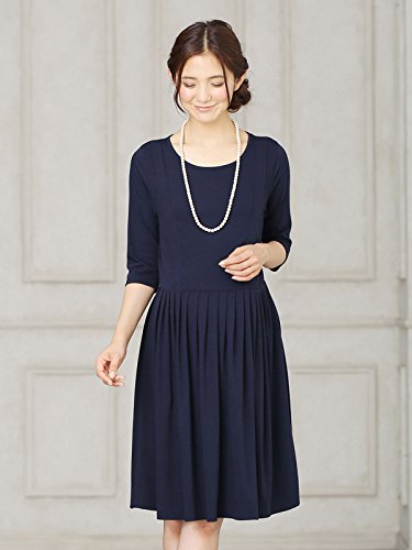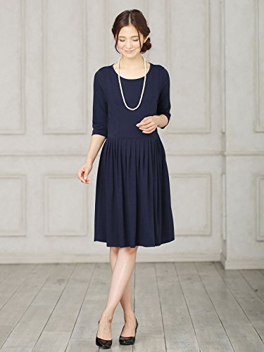 Angeliebe エンジェリーベ マタニティ ワンピース 授乳口 付 カットソー 切り替え タック フレア ワンピ 産前 産後 授乳服 お宮参り S ~ M ネイビー
