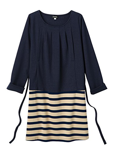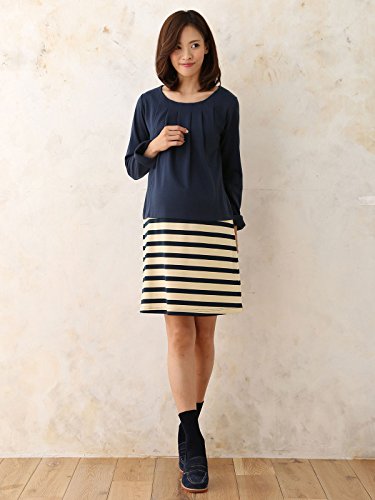 Angeliebe エンジェリーベ マタニティ 授乳口 付 ポンチ ボーダー 切替 ワンピース 妊婦服 産前 産後 長袖 L ネイビー