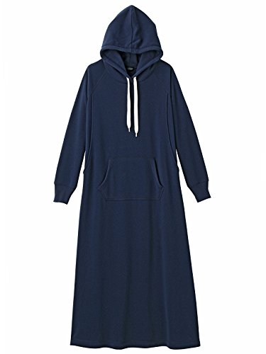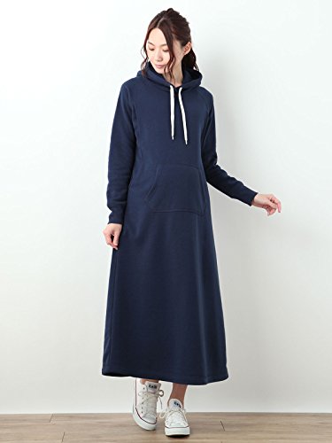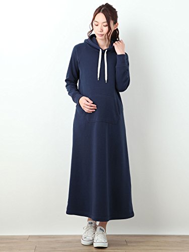 Angeliebe エンジェリーベ 授乳 口 付 ふんわり 裏 起毛 フード 付 き マキシ ワンピース S ~ M R : レギュラー 丈 ネイビー