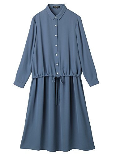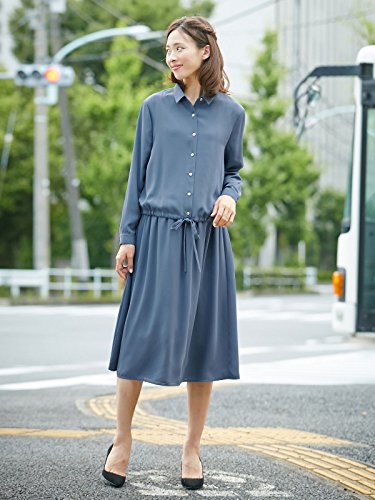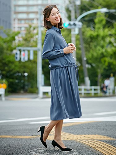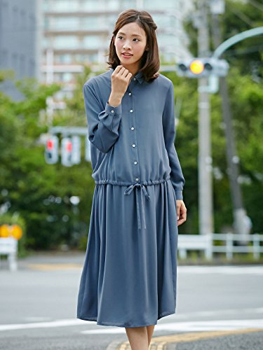 Angeliebe エンジェリーベ マタニティ ワンピース 授乳口 付 シャツ カラー レイヤード ワンピ 妊婦服 裏地付 産前 産後 S ~ M スモーキー ブルー
