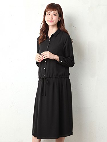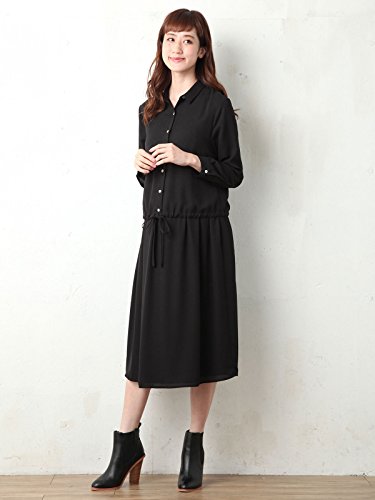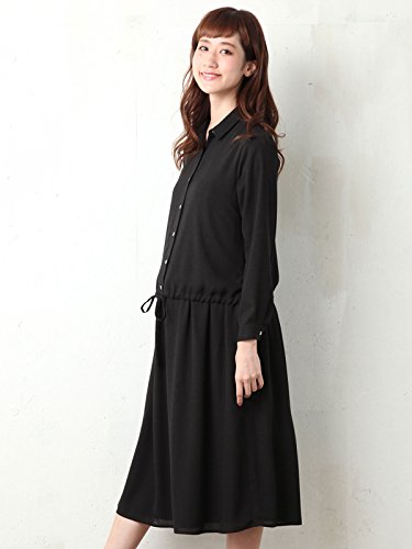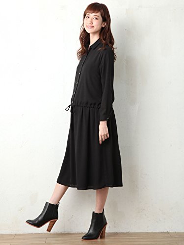 Angeliebe エンジェリーベ マタニティ ワンピース 授乳口 付 シャツ カラー レイヤード ワンピ 妊婦服 裏地付 産前 産後 M ~ L ブラック