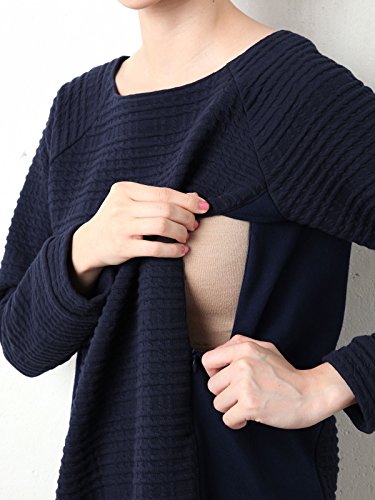 Angeliebe エンジェリーベ マタニティ ワンピース 授乳口 付 チェック キルティング ジャガード × 裏毛 切替 ワンピ 妊婦服 産前 産後 L グレー