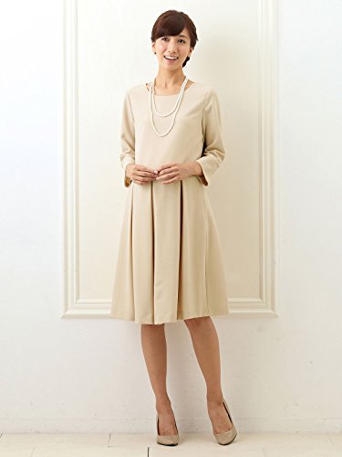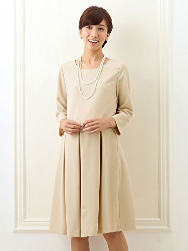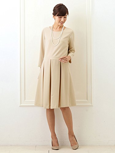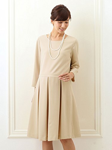 Angeliebe エンジェリーベ マタニティ ワンピース 授乳口付き 七分袖 タック スカート ワンピ 妊婦服 裏地付 お宮参り 産前 産後 M ~ L ベージュ 21047 21047102