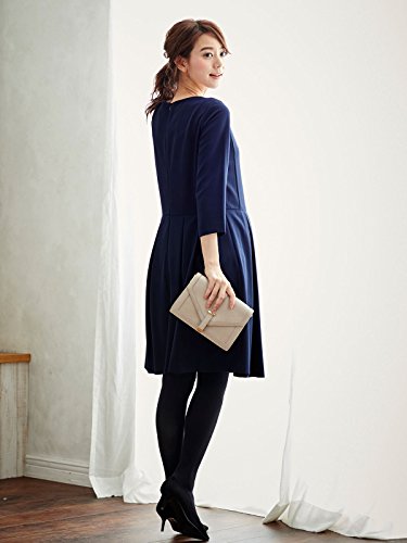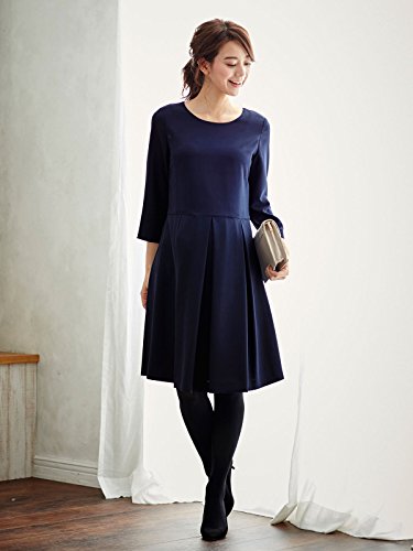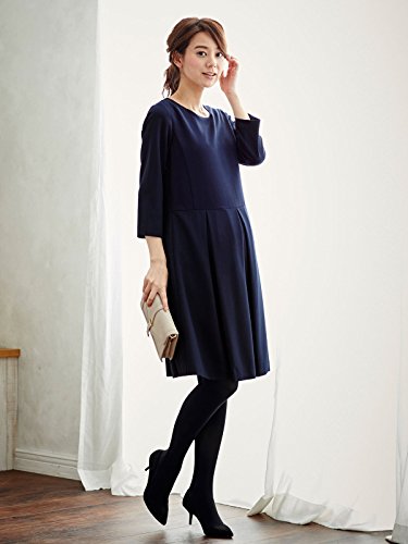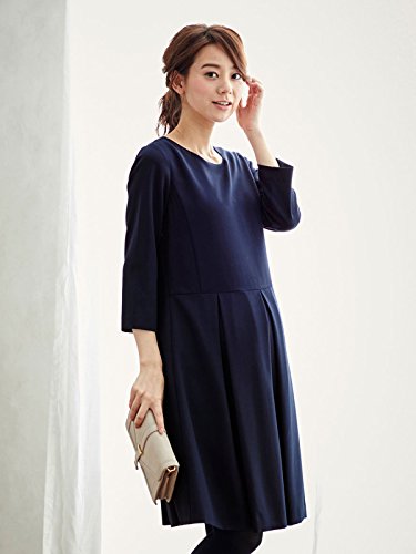 Angeliebe エンジェリーベ マタニティ ワンピース 授乳口付き 七分袖 タック スカート ワンピ 妊婦服 裏地付 お宮参り 産前 産後 S ~ M ネイビー 21047 21047201