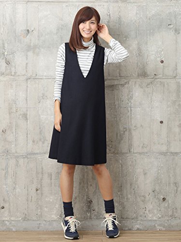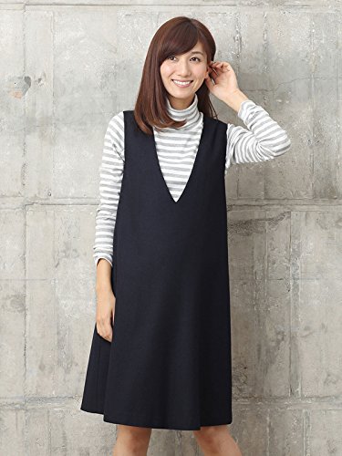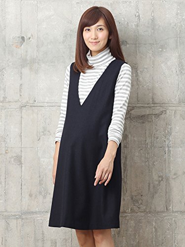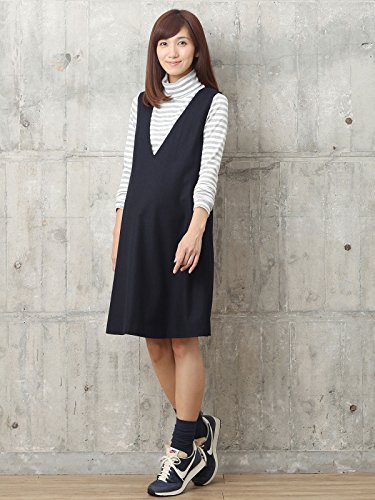 Angeliebe エンジェリーベ 授乳 しやすい バック ファスナー V ネック フレア ジャンパー ドレス M ~ L ネイビー