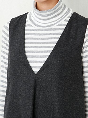 深Vネックのシンプルなジャンパースカートは、重ね着しやすくて動きやすいロングセラーのマタニティアイテム。