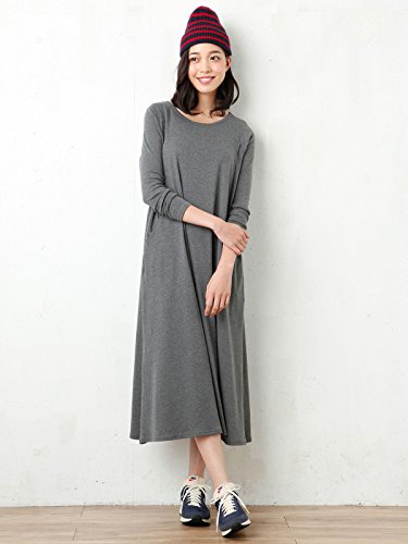 Angeliebe エンジェリーベ 産後用 授乳服 やわらか フライス ロング ワンピース ママ 長袖 フリー 杢 チャコール