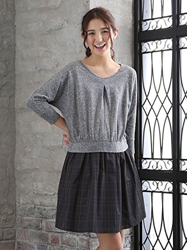 Angeliebe エンジェリーベ マタニティ ワンピース 授乳口付き スクラブ 天竺 × メモリータフタ ドッキング ワンピ 妊婦服 産前 産後 L グレー 21083 21083170