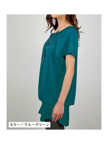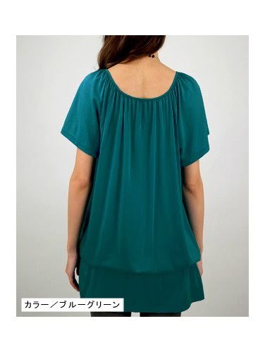 【 アウトレット 】 Angeliebe エンジェリーベ マタニティ チュニック 妊婦服 産前 産後 半袖 トップ フリー グリーン
