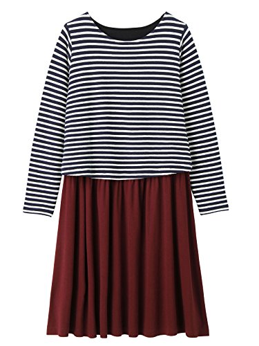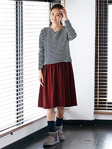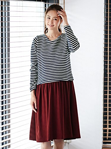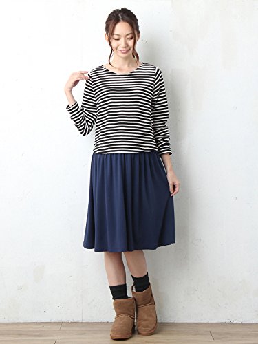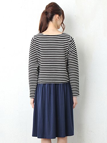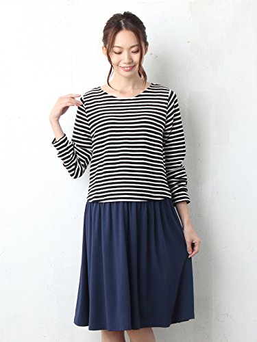 Angeliebe エンジェリーベ マタニティ ワンピース 授乳口付き リップル ボーダー ドッキング ワンピ 妊婦服 産前 産後 S ~ M ネイビー × アイボリー 21148 21148301