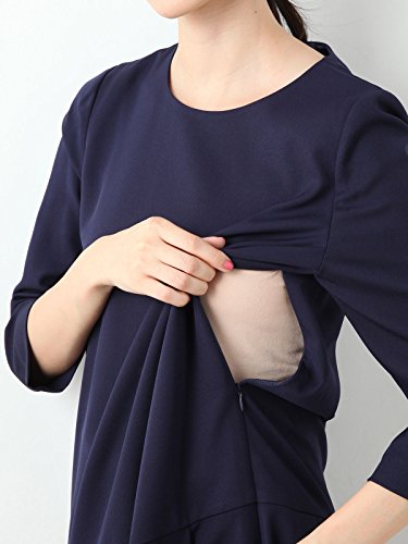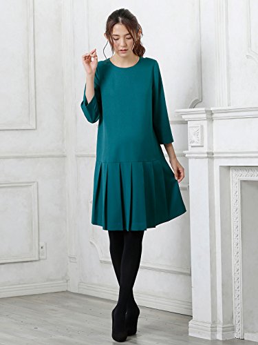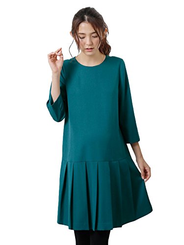 Angeliebe エンジェリーベ マタニティ 授乳口 付 タック プリーツ ワンピース 産前 産後 妊婦服 通勤 S ~ M グリーン