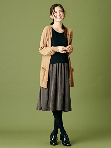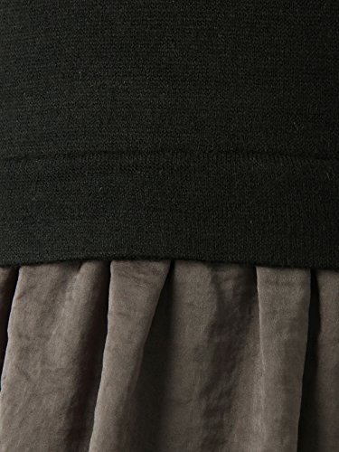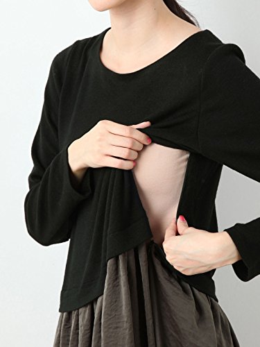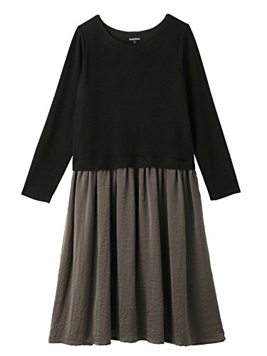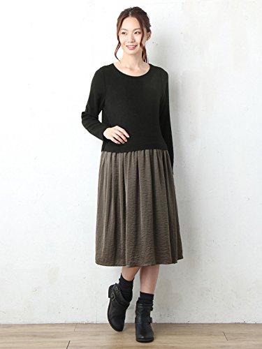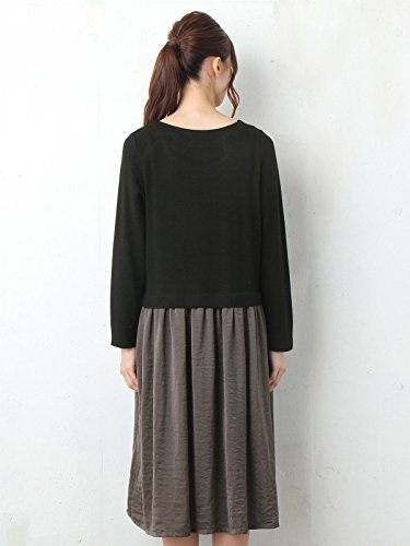 Angeliebe エンジェリーベ 授乳 口 付 ニット × ビンテージ サテン コンビ ワンピース フリー ブラック × チャコール