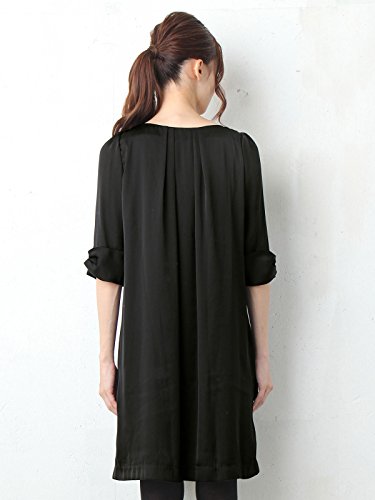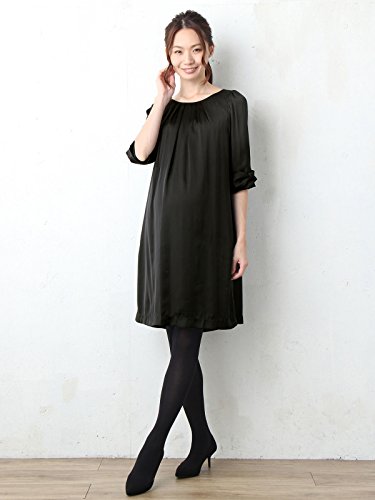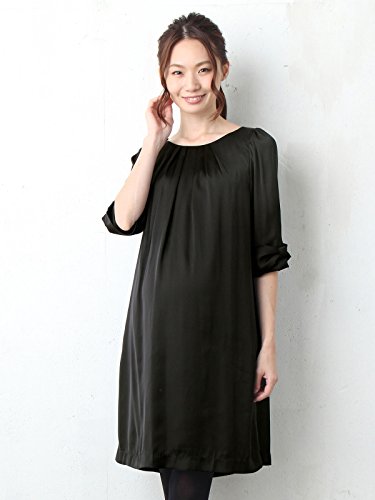 Angeliebe エンジェリーベ マタニティ ワンピース 授乳口付き 袖 リボン サテン Aライン ワンピ 妊婦服 お宮参り フォーマル 産前 産後 11号 ブラック 21058 21058130