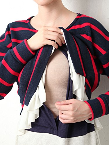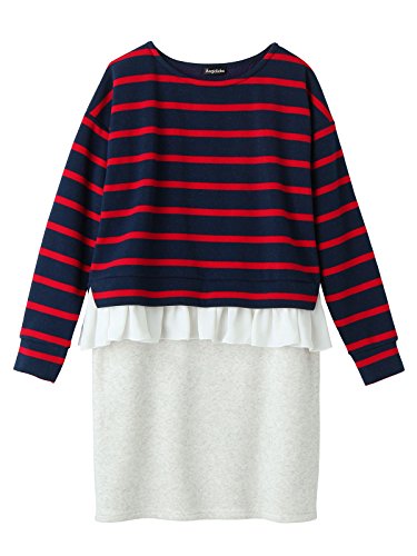 Angeliebe エンジェリーベ マタニティ 授乳口 付 裏起毛 ドッキング ワンピース 妊婦服 長袖 産前 産後 重ね着風 S ~ M ネイビー ボーダー