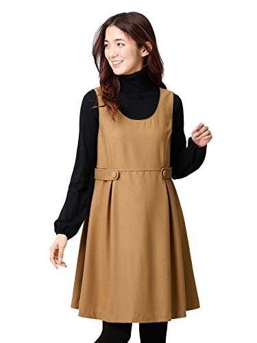 Angeliebe エンジェリーベ ウール 混 ハイ ウエスト ジャンパー ドレス 11号 キャメル
