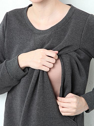 Angeliebe エンジェリーベ 授乳 口 付 ボンバー ヒート マキシ ワンピース S ~ M 杢 グレー