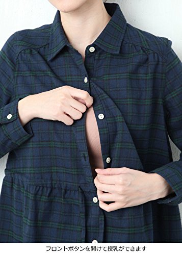 Angeliebe エンジェリーベ 授乳 しやすい ビエラ 先染め チェック シャツ ワンピース L グリーン