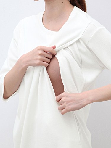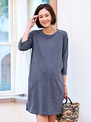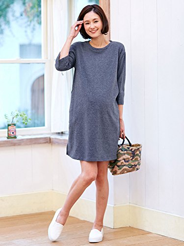 Angeliebe エンジェリーベ マタニティ ワンピース 授乳口 付 六分 袖 ミニ 裏毛 ボックス シルエット ワンピ 産前 産後 妊婦服 M ~ L 杢 ネイビー