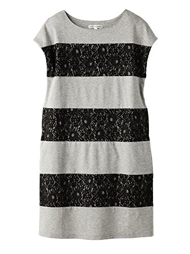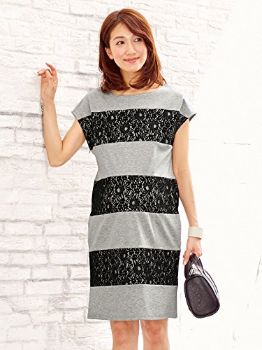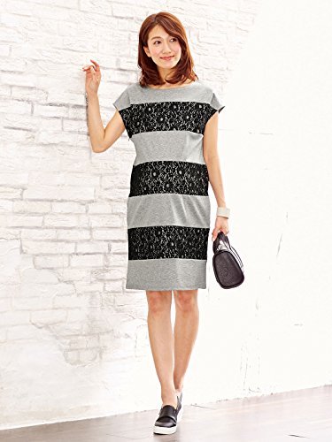 Angeliebe エンジェリーベ マタニティ ワンピース 授乳口 付 スーピマ コットン ポンチ × レース 切替 ボーダー ワンピ 妊婦服 産前 産後 通勤 半袖 M グレー