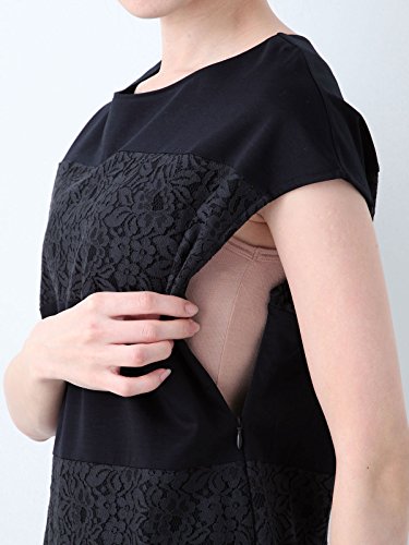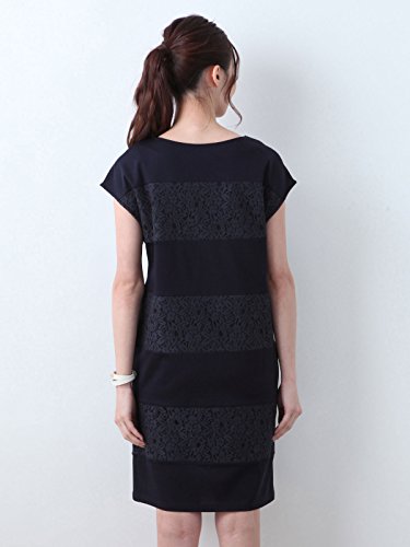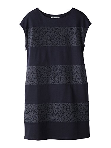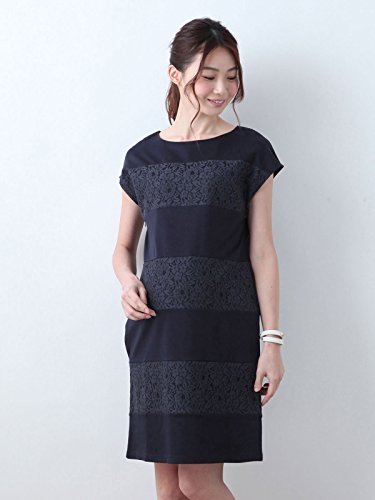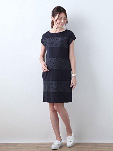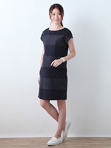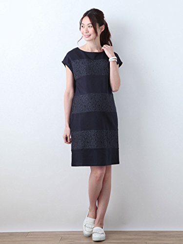 Angeliebe エンジェリーベ 授乳 口 付 スーピマ コットン ポンチ × レース 切替 ボーダー ワンピース L ネイビー