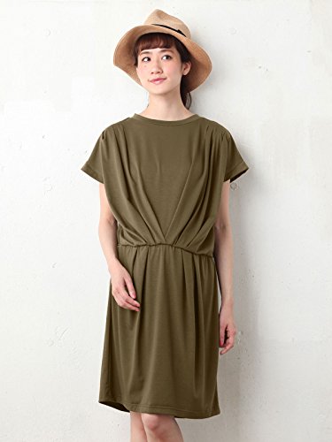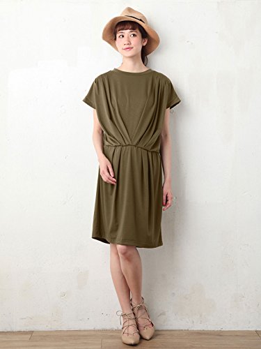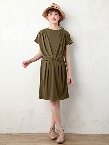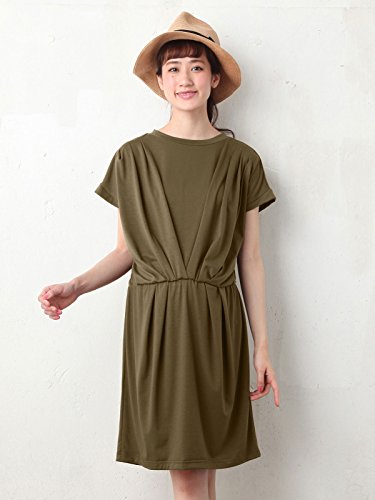 Angeliebe エンジェリーベ マタニティ 授乳口 付 カットソー タック ワンピース 産前 産後 対応 妊婦服 半袖 フリー カーキ