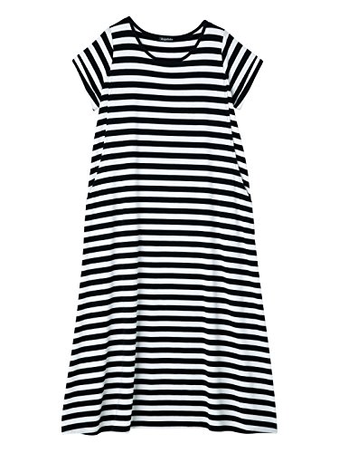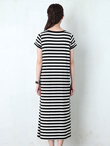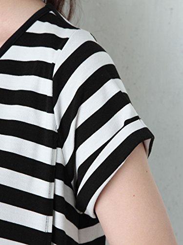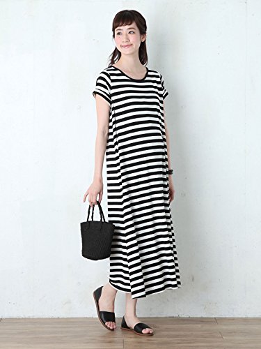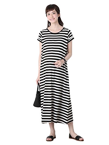 Angeliebe エンジェリーベ マタニティ 授乳口 付 半袖 マキシ ワンピース 妊婦服 産前 産後 S ~ M ブラック × ホワイト ボーダー