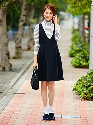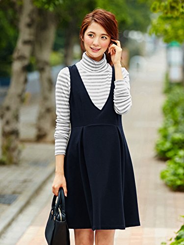 Angeliebe エンジェリーベ 授乳 しやすい リップル V ネック ジャンパー ドレス L ネイビー