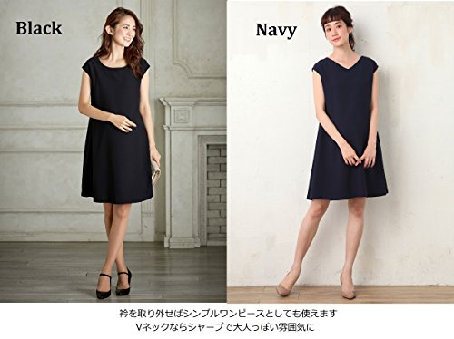 - ●【1枚で4通り!普段使いからお呼ばれまで活躍してくれる万能ワンピ】1枚で4通りもの着こなしが楽しめる技ありデザイン。前後どちらでも着られる仕様で、ラウンドネックとVネックを使い分けられます。さらに別布のリボン衿はボタンで取り外し可能。自然に広がるAラインシルエットとキャップスリーブで上品なワンピーススタイルが完成します。