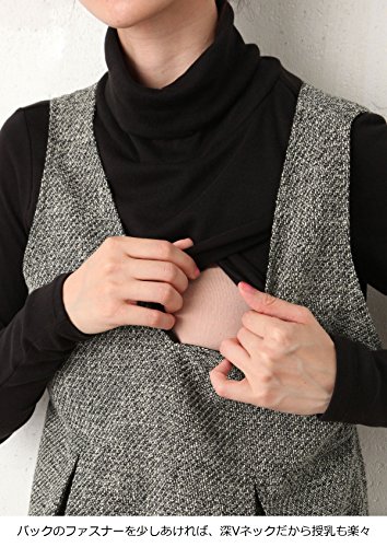 Angeliebe エンジェリーベ 授乳 しやすい ツイード V ネック ジャンパー ドレス M オフ