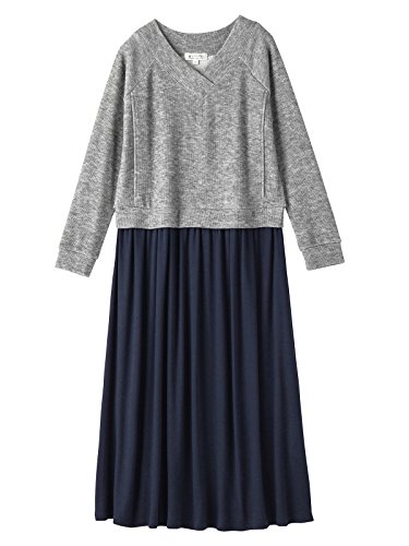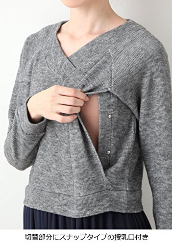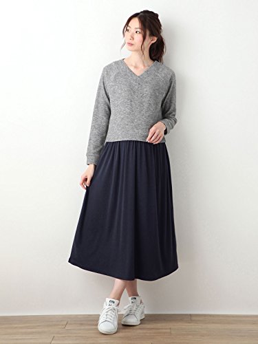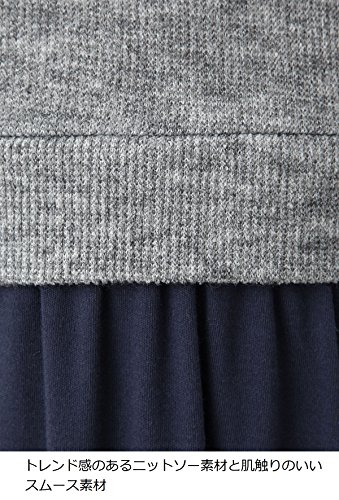Angeliebe エンジェリーベ 授乳 口 付 V ネック リブ ニット ソー × スムース マキシ ワンピース M グレー