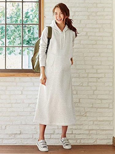 Angeliebe エンジェリーベ マタニティ ワンピース 授乳口 付 ふんわり 裏起毛 フード 付き マキシ ワンピ 妊婦服 授乳服 産前 産後 S ~ M 杢 グレー