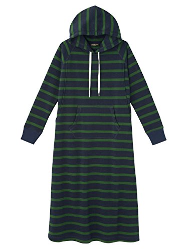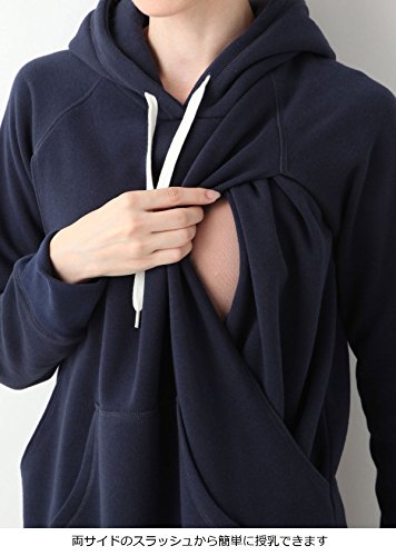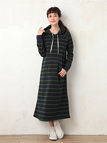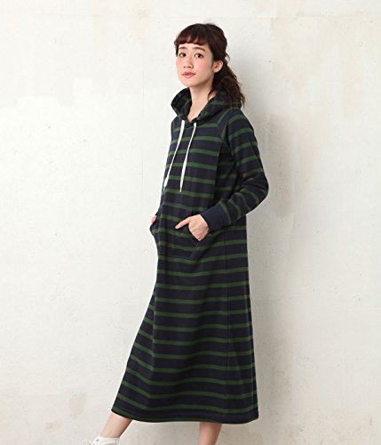 Angeliebe エンジェリーベ マタニティ ワンピース 授乳口 付 ふんわり 裏起毛 フード 付き マキシ ワンピ 妊婦服 授乳服 産前 産後 S ~ M ネイビー × グリーン
