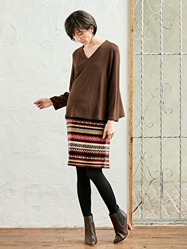 Angeliebe エンジェリーベ マタニティ ワンピース 授乳口 付 ジャガード ニット ワンピ 授乳服 妊婦服 産前 産後 M ~ L ブラウン