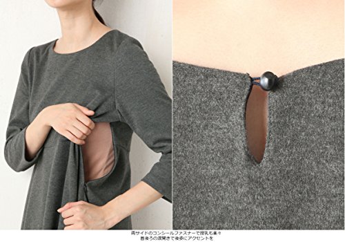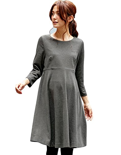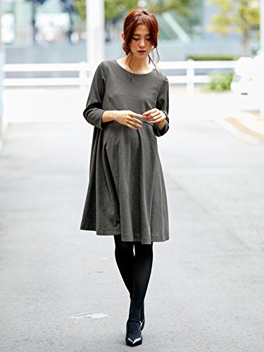 Angeliebe エンジェリーベ 授乳 口 付 上質 微 起毛 ポンチ フレア ー シルエット ワンピース M ~ L グレー