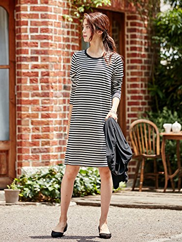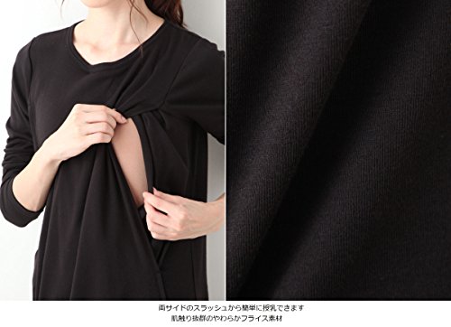 Angeliebe エンジェリーベ 産後用 ワンピース 授乳服 やわらか フライス ボックス ワンピ 長袖 S ~ M ブラック × オフ 30083 30083401
