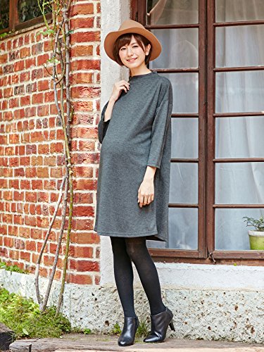 Angeliebe エンジェリーベ マタニティ ワンピース 授乳口付き ボトル ネック ポンチ ワンピ 妊婦服 産前 産後 M ~ L 杢 チャコール 21677 21677302