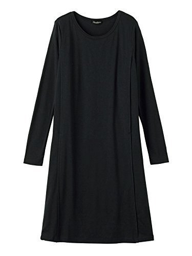 Angeliebe エンジェリーベ 産後用 ワンピース 授乳服 やわらか フライス ボックス ワンピ 長袖 M ~ L ブラック 30083 30083102