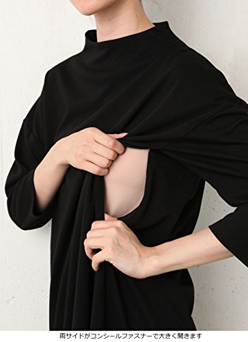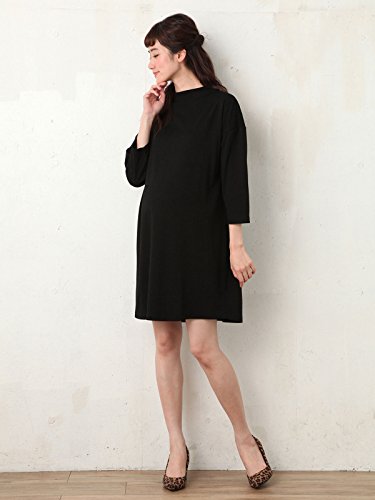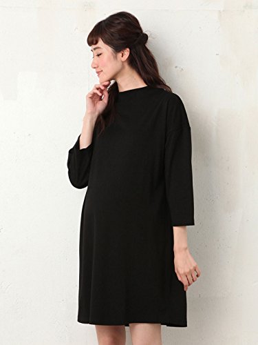 Angeliebe エンジェリーベ マタニティ ワンピース 授乳口付き ボトル ネック ポンチ ワンピ 妊婦服 産前 産後 S ~ M ブラック 21677 21677101