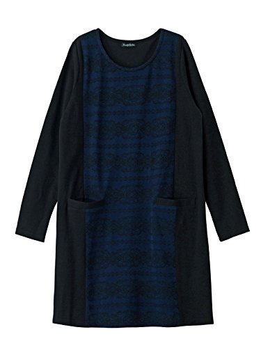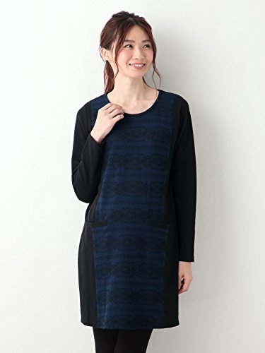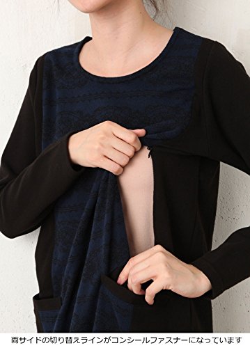 Angeliebe エンジェリーベ マタニティ 授乳口 付 レース プリント ワンピース 妊婦服 授乳服 産前 産後 お呼ばれ 仕事着 S ~ M ネイビー × ブラック