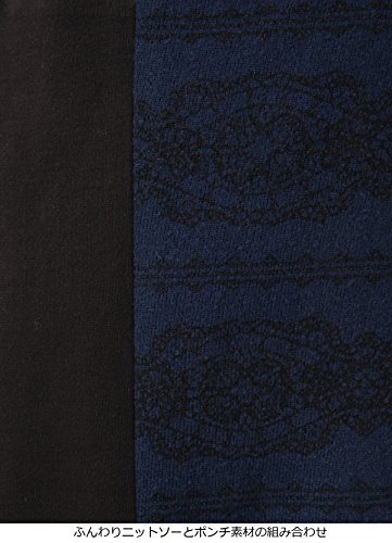 細見え効果大なワンピースです。フロントはふんわりとしたニットソーに繊細なレース柄をプリント。