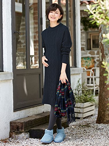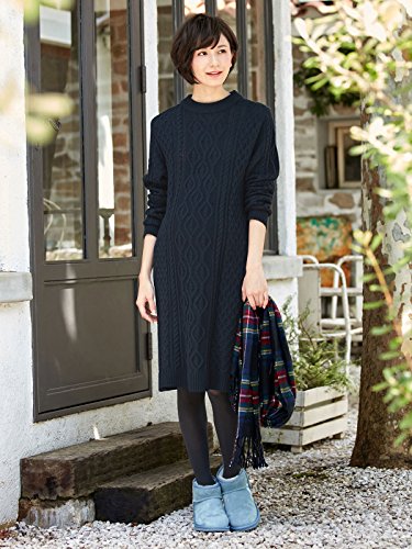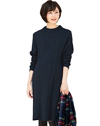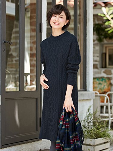 Angeliebe エンジェリーベ マタニティ ウォッシャブル ケーブル ニット ワンピース 妊婦服 産前 産後 セーター フリー ネイビー
