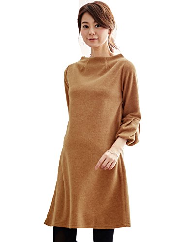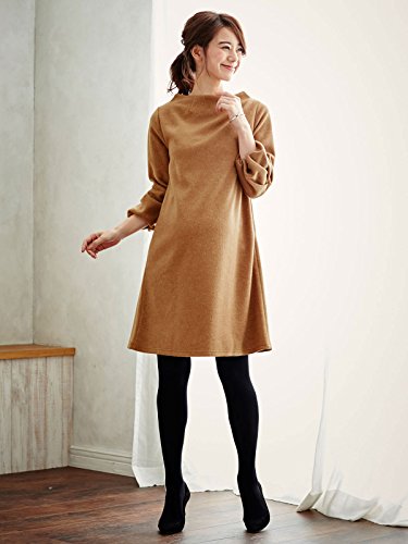 Angeliebe エンジェリーベ 授乳 口 付 起毛 スライバー ボトル ネック 袖口 パフ ワンピース S ~ M キャメル