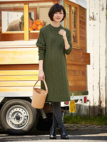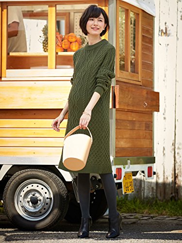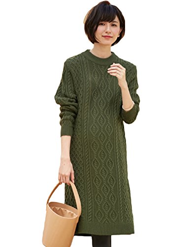 Angeliebe エンジェリーベ ウォッシャブル ケーブル ニット ワンピース フリー カーキ