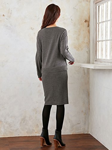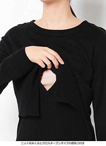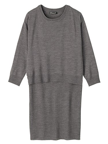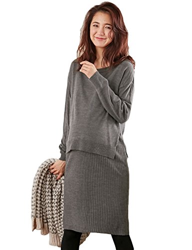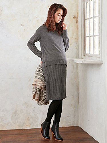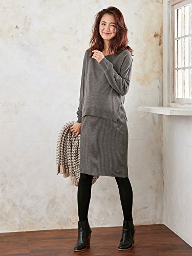 Angeliebe エンジェリーベ 授乳 口 付 天竺 ニット × リブ ニット レイヤード ワンピース フリー 杢 チャコール